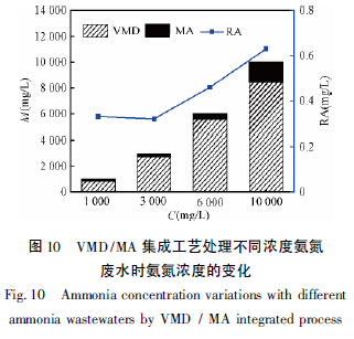 本集成工藝結(jié)合了VMD 和MA 工藝在脫氨實驗中的優(yōu)點(diǎn),可以回收利用氨并且將硫酸銨廢液回流繼續(xù)脫氨從而解決硫酸銨的二次污染問題。為高濃度氨氮廢水的經(jīng)濟(jì)有效處理提供了一條全新技術(shù)路線。