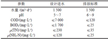 該公司廢水來源主要為AE 酯、氨噻肟酸、鄧鈉鹽等產(chǎn)品生產(chǎn)過程中的真空泵下水、少量萃取分層或離心廢水、地面沖洗水以及冷排水。經(jīng)現(xiàn)場污染源強調(diào)查分析,該混合廢水具有有機污染物種類多、濃度高、抗生素含量較高、可生化性較差等特點。根據(jù)環(huán)保要求,廢水處理后水質應達到GB 21904-2008 表2 標準。設計水質水量及排放標準列于表1。