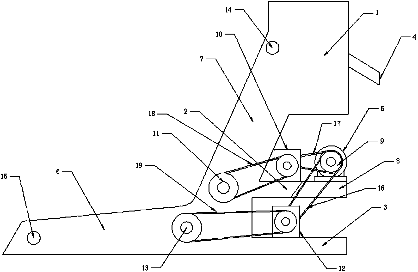 2.根據權利要求1所述的新型污水處理用格柵機,其特征在于:所述格柵機本體(1)上固定安裝有一排污滑板(4),所述連接帶(20)的頂部輸出端與所述排污滑板(4)相連。
