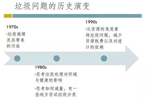 從專家委員會發表的一些報告中也可以看出這個歷程的發展,1974年專家委員會出版《垃圾與人的健康》,認識到填埋、焚燒只是轉移問題而已,即使焚燒比較終還是需要填埋(焚燒的飛灰量就占總垃圾量的5%-20%),污染仍會存在。1990年出版了厚厚一本的《垃圾經濟評估專輯》,因為除了垃圾處理過程所帶來的健康問題之外,進一步指出我們還面臨資源減少和自然破壞的問題,報告中探討和思考如何將兩者與生活質量的保證脫鉤,即在保證我們的生活質量的同時,不會破壞我們的自然環境和消耗有限的資源。