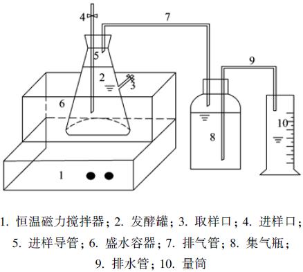 將600 mL果膠廢水添加至小發酵罐(1?000 mL),接種上述馴化污泥,發酵罐中t=35℃、 pH為7.0左右、 VSS為10 g ·L-1. 接種后反應器用氮氣吹5 min,以驅除發酵罐中的空氣,然后置于恒溫水浴中培養.