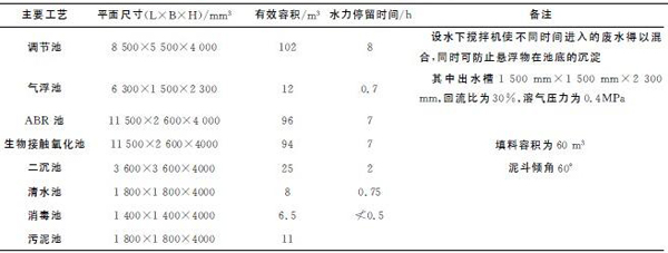 表2 主要構(gòu)筑物及設(shè)計(jì)參數(shù)