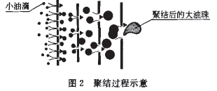 聚結器是整個工藝的核心,廢水中的分散油和乳化油流經聚結材料的表面時,油滴由小變大的過程如圖2所示。