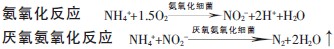ENRT 是一種高效脫氮技術,即短程硝化厭氧氨氧化,其工藝原理是在硝化階段通過氨氧化細菌將部分氨氮氧化成亞硝酸鹽氮〔2-3〕,剩余的氨氮和已轉化的亞硝酸鹽氮在厭氧環境中由厭氧氨氧化細菌直接生成氮氣〔4〕。