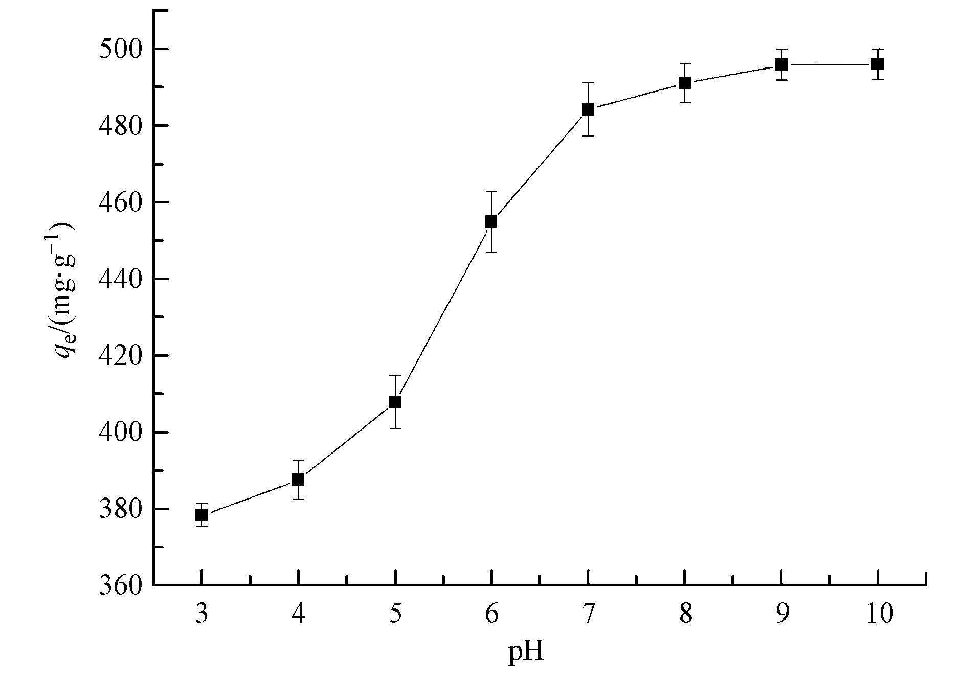 圖 6溶液pH對(duì)Fe3O4@C吸附甲基綠的影響