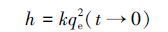 式中,k是吸附速率常數(shù)(g·mg-1·min-1),qt是任意時(shí)刻甲基綠的吸附量(mg·g-1),qe是平衡吸附量.起始吸附速率h(mg·g-1·min-1)可以用以下方程式描述: