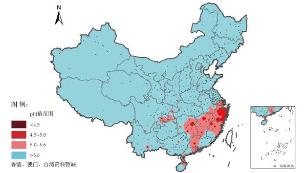 2016年全國(guó)降水pH年均值等值線分布示意圖