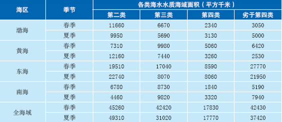 2016年未達(dá)到類(lèi)海水水質(zhì)標(biāo)準(zhǔn)的各類(lèi)海域面積