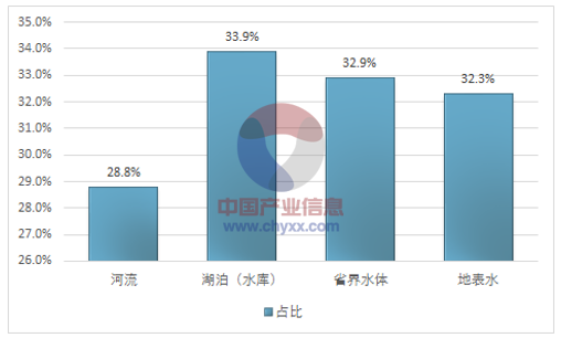 資料來(lái)源:2016年中國(guó)環(huán)境公報(bào)2016年,全國(guó)地表水1940個(gè)評(píng)價(jià)、考核、排名斷面中,Ⅰ類(lèi)、Ⅱ類(lèi)、Ⅲ類(lèi)、Ⅳ類(lèi)、Ⅴ類(lèi)和劣Ⅴ類(lèi)水質(zhì)斷面分別占2.4%、37.5%、27.9%、16.8%、6.9%和8.6%。