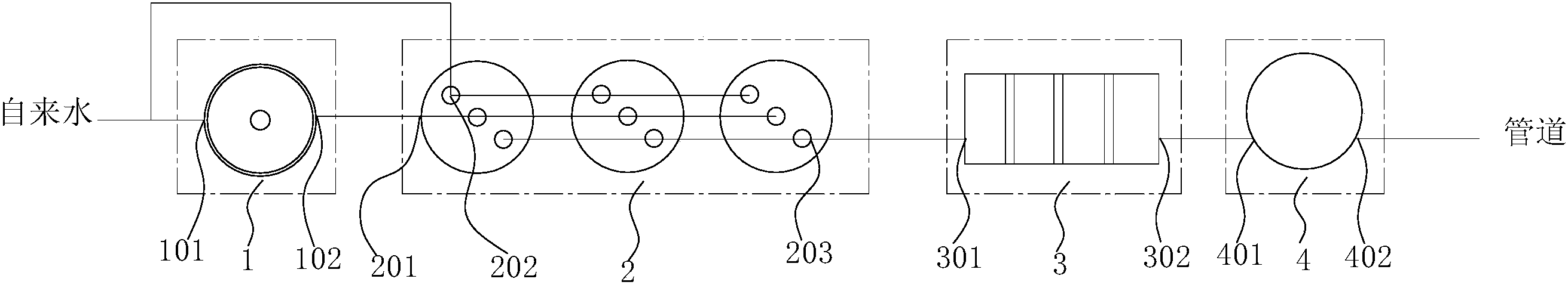S1.將熱電廠化學(xué)水送入多介質(zhì)過濾器,過濾所述化學(xué)水中的污染物;