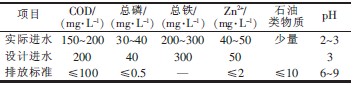 表1 酸洗廢水的水質及設計排放標準