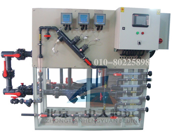示蹤劑加藥裝置由示蹤劑儀表、PH儀表、0RP儀表、電導率儀表、控制系統、無線遠傳系統等部分組成。其工作原理是由示蹤劑儀表檢測循環水系統中藥劑的濃度,進行PID運算,然后自控制系統啟動或關閉加藥泵往循環水系統添加藥劑。其功能是使藥劑穩定在一定的濃度范圍,達到保護管道不會結垢或腐蝕的趨勢。循環水系統進行排污或補水時,只要藥劑濃度滿足設定值,加藥泵依然不向系統中投加藥劑。從而節約客戶使用藥劑的成本。