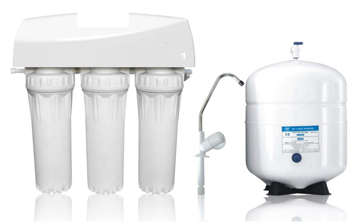反滲透,英文為Reverse Osmosis,是60年代發展起來的一項新的薄膜分離技術。反滲透膜分離法是利用半透膜(R.O膜)以水壓(或泵浦加壓)使水由較高濃度的一方滲透到較低濃度的一方,通過孔徑僅為1/10000um的R.O膜(相當于大腸桿菌大小的1/60000,病毒的1/3000),將現在社會工業污染物及重金屬、細菌、病毒等大量混入水中的雜質全部清除,使出水的導電率在10us/cm(25度時)以下,溶解性總固體含量小于3mg/升,從而達到規定的理化指標及衛生標準的一種新型水處理技術。