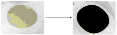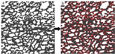圖 3 原始膜孔結構(a)與聚多巴胺(PDA)鍍膜后的膜孔結構(b)的比較