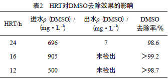 在MBR運(yùn)行的正式期,HRT對DMSO去除效果的影響見表2。